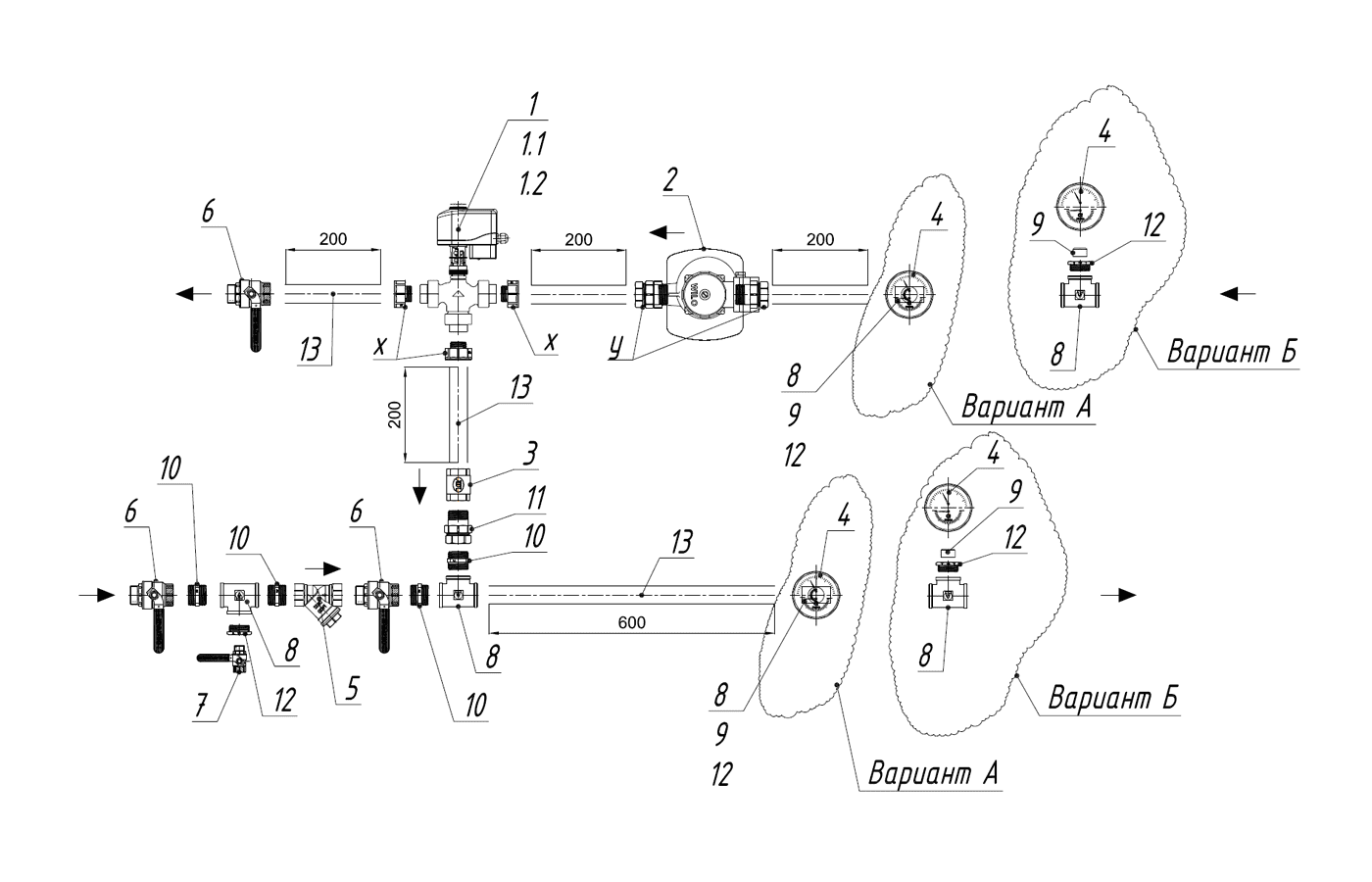 Узел регулирования для водного нагревателя со схемой исполнения 3Н