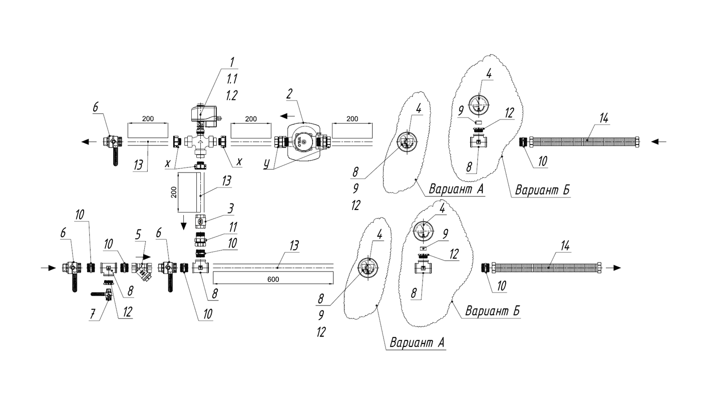 Узел регулирования для водного нагревателя со схемой исполнения 4Н